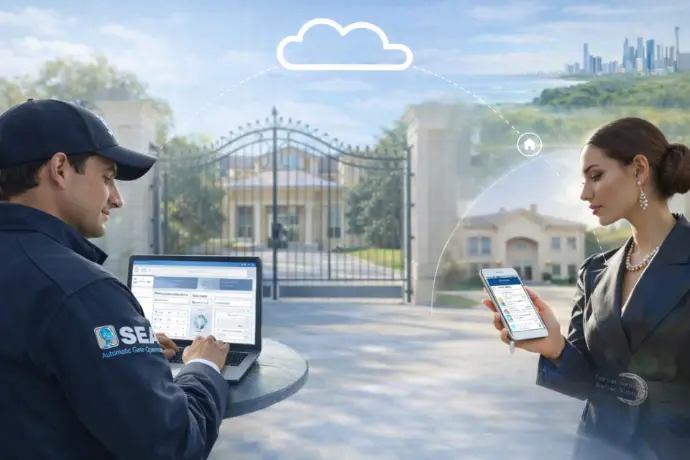 SEA Cloud is een plug & play tweezijdige communicatiemodule die rechtstreeks wordt aangesloten op de sturing van de poortaandrijving.